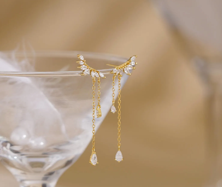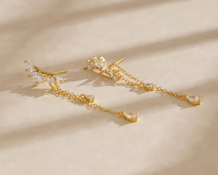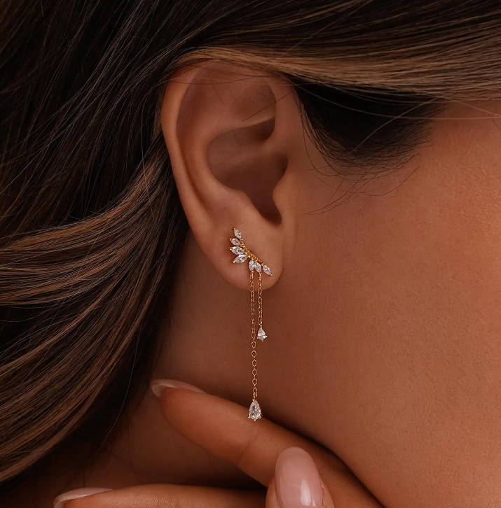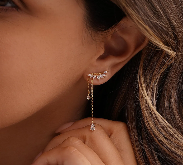 Détail distinctif : Pampilles délicates avec pierres en forme de goutte, créant un mouvement gracieux et lumineux.